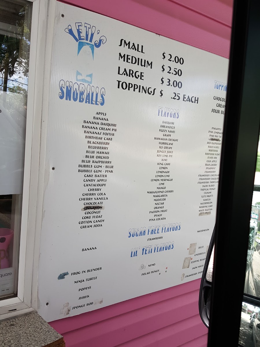 The atmosphere at Yeti's is another reason to stop by. With its warm, inviting decor and friendly staff, it’s more than just a place to grab a treat; it’s a spot where families can gather and share sweet moments. Whether you’re looking for a refreshing break on a hot summer day or a place to indulge your inner child, Yeti's Snowballs wraps you in a friendly embrace that’s sure to satisfy.